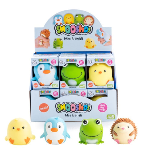 4 assorted cute animals: penguin, chick, hedgehog & frog